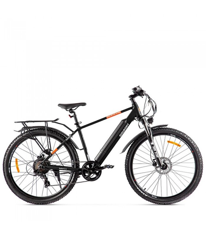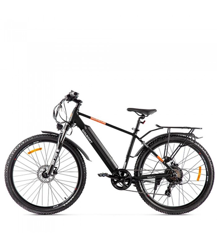 Задний багажник позволит вам закрепить дополнительный груз на электро велосипеде. Максимальная скорость электрического велосипеда до 35 км/ч за счёт мотора на 500 ватт. Пневматические 27,5-дюймовые колёса и передняя амортизационная вилка хорошо поглощают вибрации при езде по бездорожью. Размеры велогибрида 142 см длина, 78 см высота и 22 см ширина