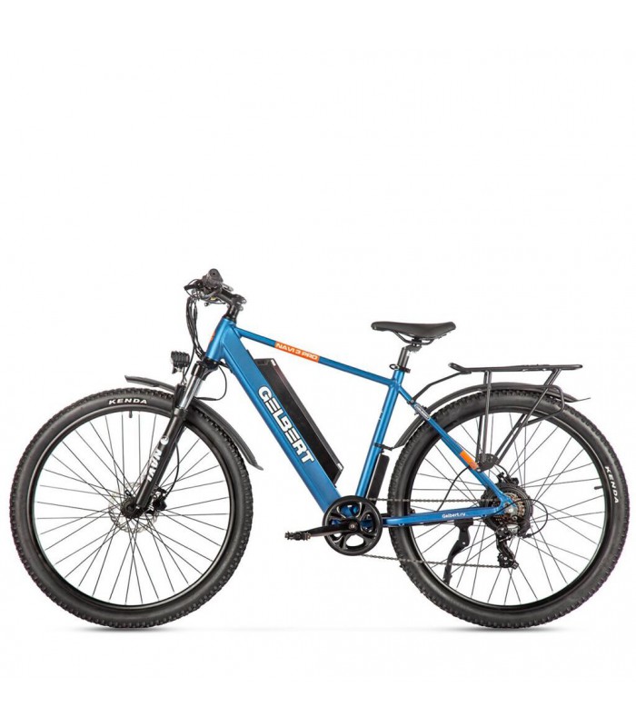 Гелберт Нави 1 Про оснащён яркой передней фарой, что делает езду в вечернее время максимально комфортной. Передние амортизаторы на электровелосипеде и пневматические 29-дюймовые колёса отлично поглощают вибрации при езде по бездорожью. Большие колёса электро велосипеда сделают комфортной езду по ухабистой местности. Дисковые гидравлические тормоза прослужат вам долгие годы исправно выполняя свои основные функции. Важно не забывайте доливать тормозную жидкость в контейнеры. На дисплее, установленном на руле, вы сможете отслеживать текущую скорость, пройденное расстояние, остаток заряда и выбранный режим езды. Gelbert Navi 1 PRO поставляется в синей и зелёной расцветках.
