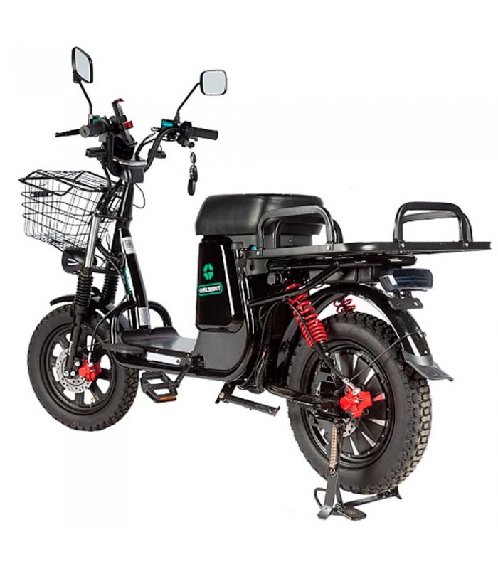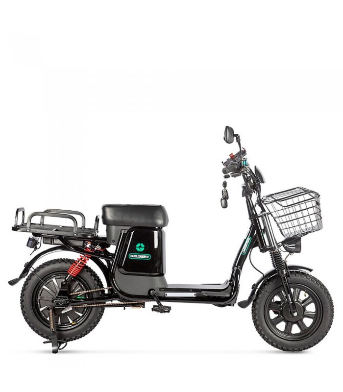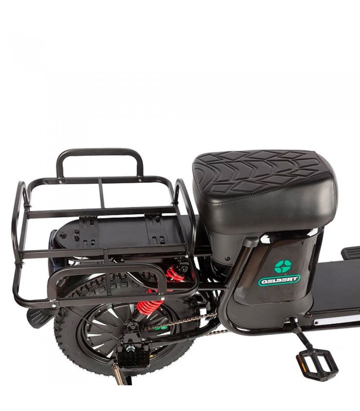 Электровелосипед Gelbert Condor 2 с современным ёмким аккумулятором LiFePo4 на 60V 40Ah (1800Wh), благодаря чему вы сможете проехать до 70 км без педального хода. Аккумулятор можно легко снять за счёт быстросъёмного механизма. Для полного заряда батареи понадобится всего 10 часов. Мотор на 240 ватт даст возможность разогнаться до 25 км/ч. На электрическом велосипеде есть корзина спереди и грузовой багажник сзади. С их помощью вы сможете перевозить дополнительный багаж и заниматься доставкой грузов.