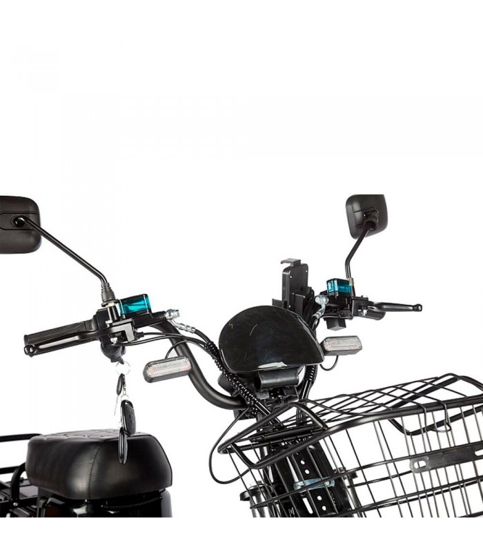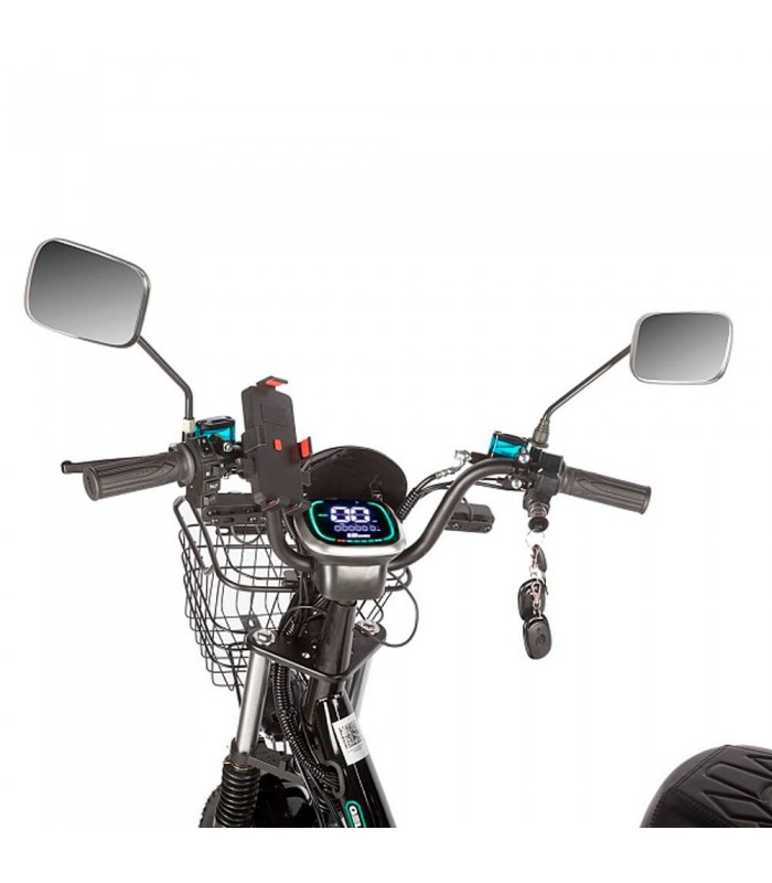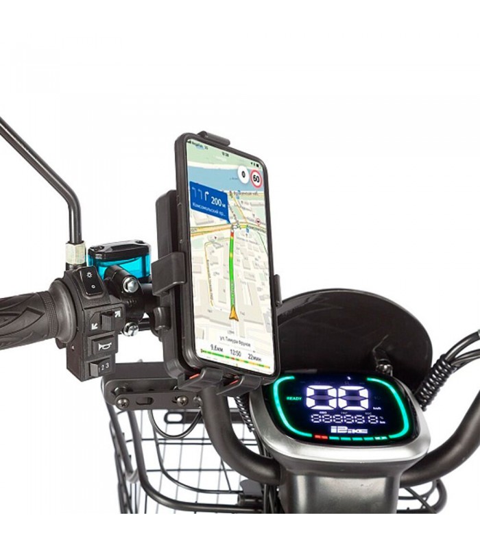 На Гелберт Кондор 2 можно кататься вдвоём. Для удобства водителя есть боковые упоры для ног. Под рулём электро велосипеда есть подстаканники. На руле расположены основные элементы управления электровелосипедом, а также зеркала заднего вида и держатель для телефона. Бортовой компьютер по центру руля даст возможность отслеживать текущую скорость, остаток заряда, пройденное расстояние и выбранный режим езды.
