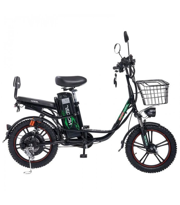 Также на нём можно кататься вдвоём благодаря мягкому сиденью для водителя и пассажира. Электровелосипед станет отличным выбором для курьеров, благодаря ёмкому аккумулятору на 60V 13Ah и корзине спереди. Электрический велосипед может проехать до 55 км без педального хода. Для полного заряда батареи понадобится всего 5 часов. Мотор на 500 ватт позволит разгоняться на электро велосипеде до 50 км/ч.