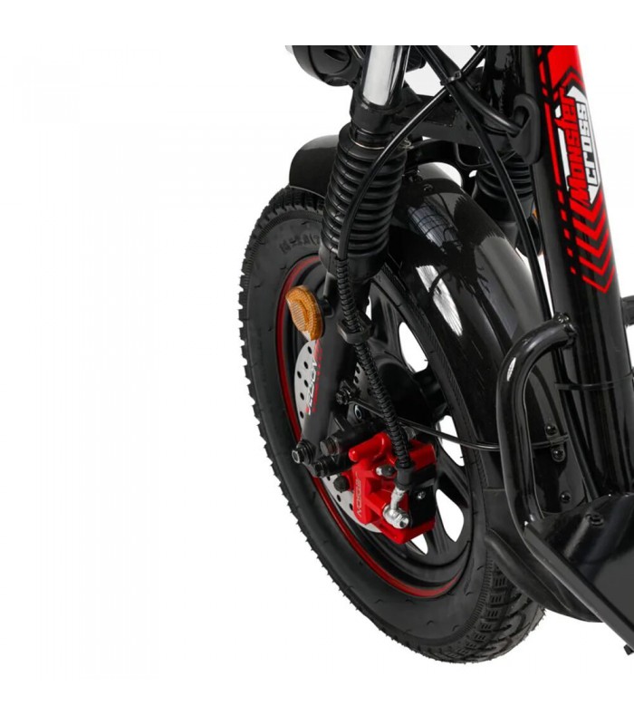 Мощный двигатель на 1200 Вт обеспечивает электровелосипеду скорость до 55 км/ч. Качественная амортизация спереди и сзади смягчает поездки по неровным дорогам, сводя вибрации к минимуму. Устойчивость и проходимость электро велосипеду гарантируют пневматические 16-дюймовые колёса с дорожным протектором. Вес электрического велосипеда всего 52 кг.