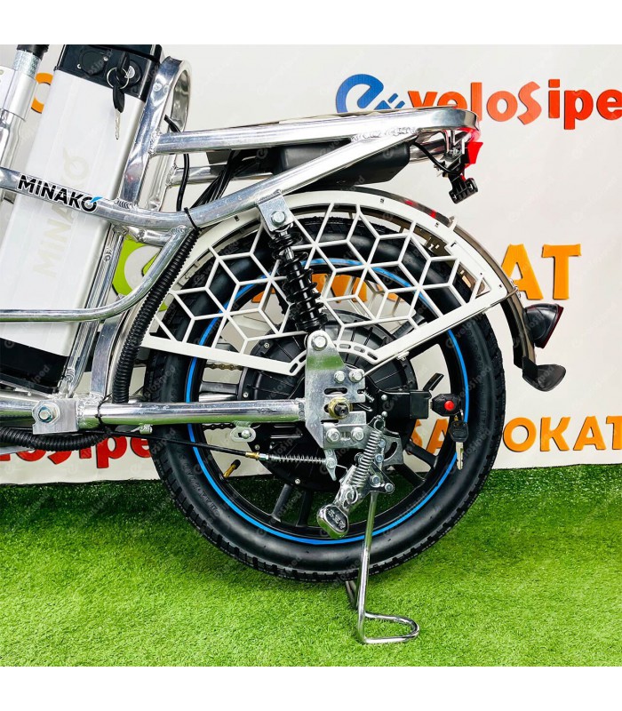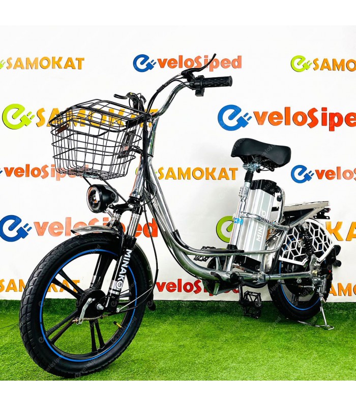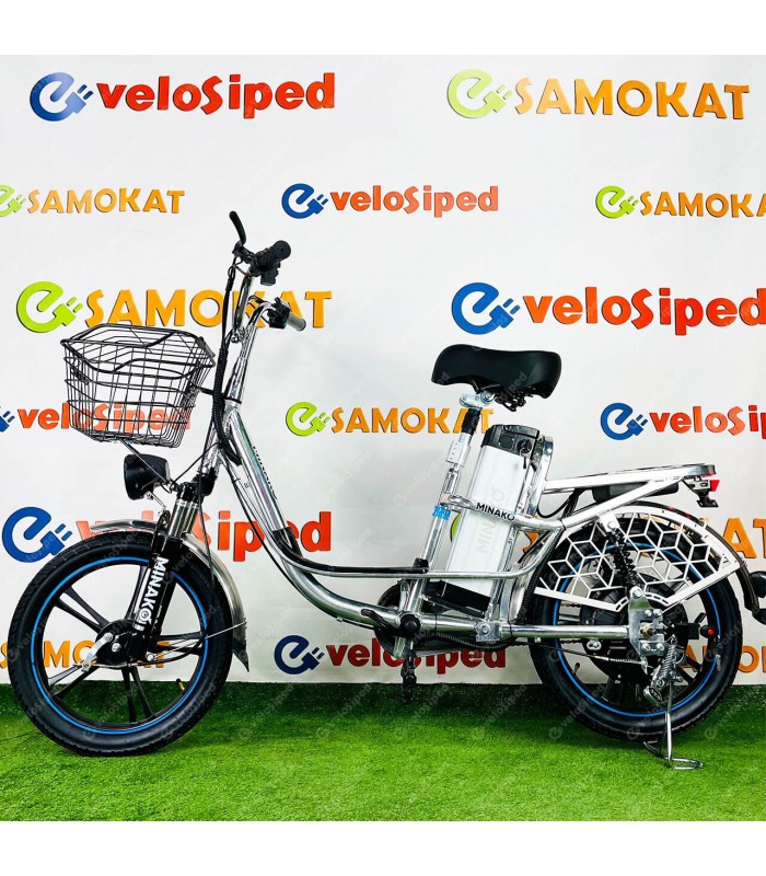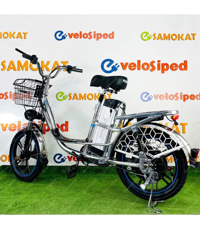 Велосипед Minako V8 Pro 15Ah специально разработан для перевозки грузов, работы в курьерских службах, для загородных и городских поездок. Крепкая конструкция рамы, дополнительные ребра жесткости и крепкие литые диски позволяют нагружать велосипед до 150 килограмм (с учетом веса человека).