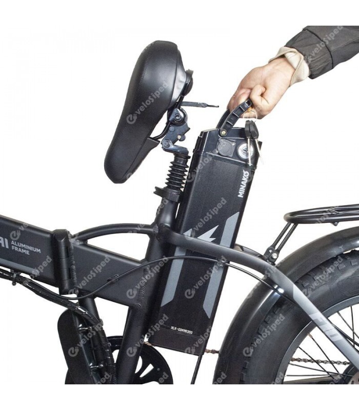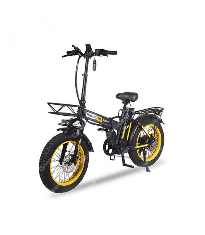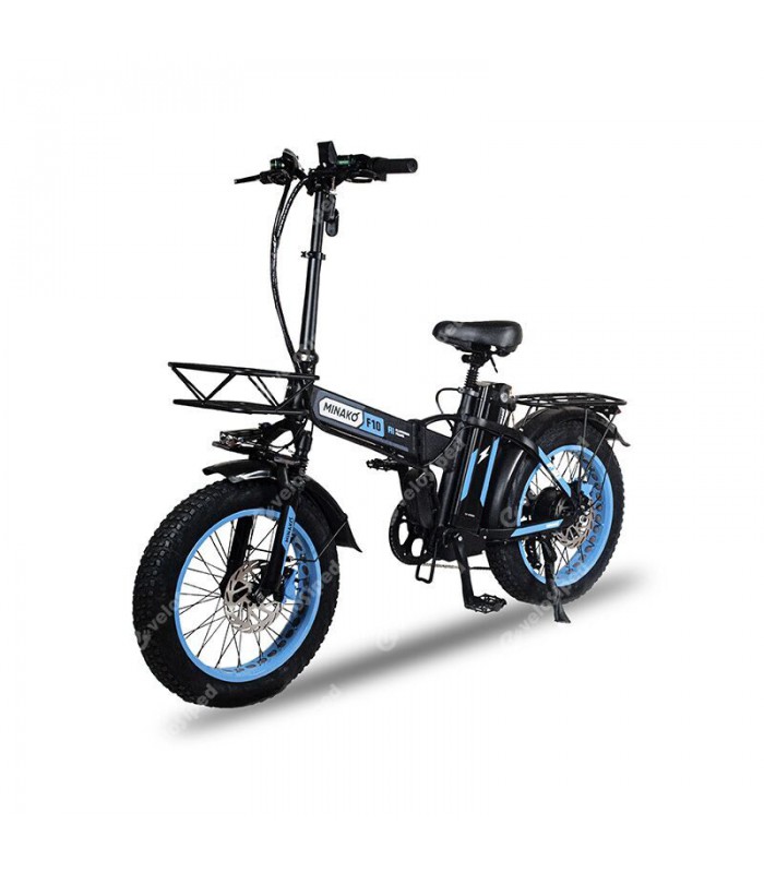 Складной электрофэтбайк Minako F10 PRO 20Ah рассчитан на взрослых райдеров весом до 120 кг. Широкие 20-дюймовые пневматические колёса и передняя амортизационная вилка хорошо поглощают вибрации при езде по неровной дороге. Вес велогибрида всего 35 кг.