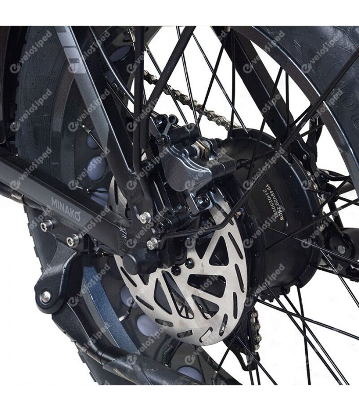 Минако Ф10 Про оснащён яркой фарой спереди и габаритом сзади для комфортной езды в вечернее время. На электро фэтбайке есть вместительная корзина и багажник, за счёт чего вы сможете брать с собой в поездку необходимые вещи. Надёжная гидравлическая дисковая тормозная система обеспечивает плавность и безопасность при торможении на любой поверхности. Семь механических скоростей сделают езду без помощи мотора намного легче. Размеры электрического велосипеда в сборе 170х115х63 см. Габариты коробки: 141х26х70 см.