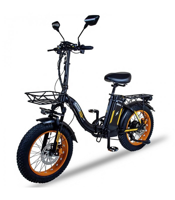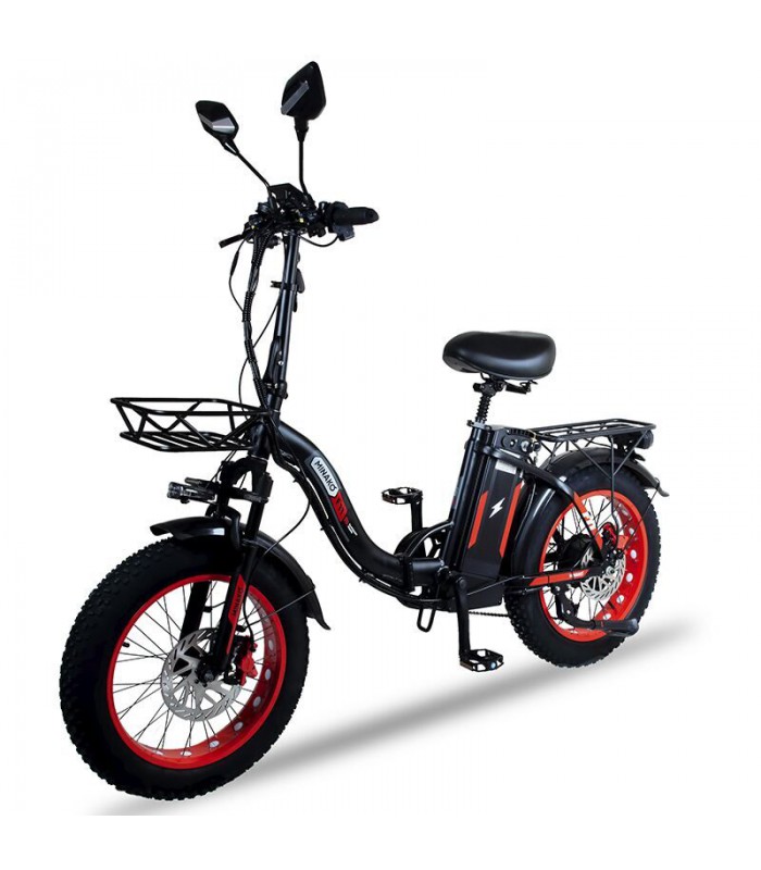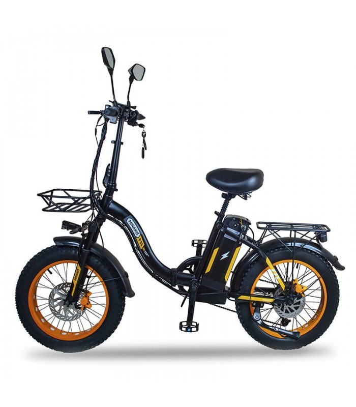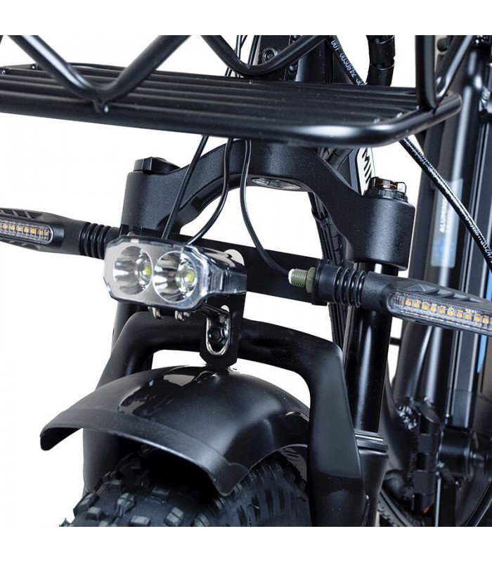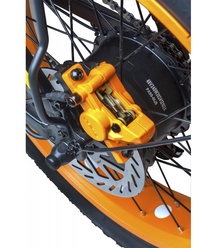 Широкие 20-дюймовые пневматические колёса и передняя амортизационная вилка хорошо справляются со всеми неровностями на дороге. Шины с глубоким протектором позволят вам комфортно передвигаться по песку, грязи и даже снегу. Вес электрического велосипеда всего 35 кг. Грузоподъёмность до 120 кг позволит кататься на электро велосипеде райдерам любой комплекции. Дисковая гидравлическая тормозная система даст возможность сделать остановку плавной и точной.