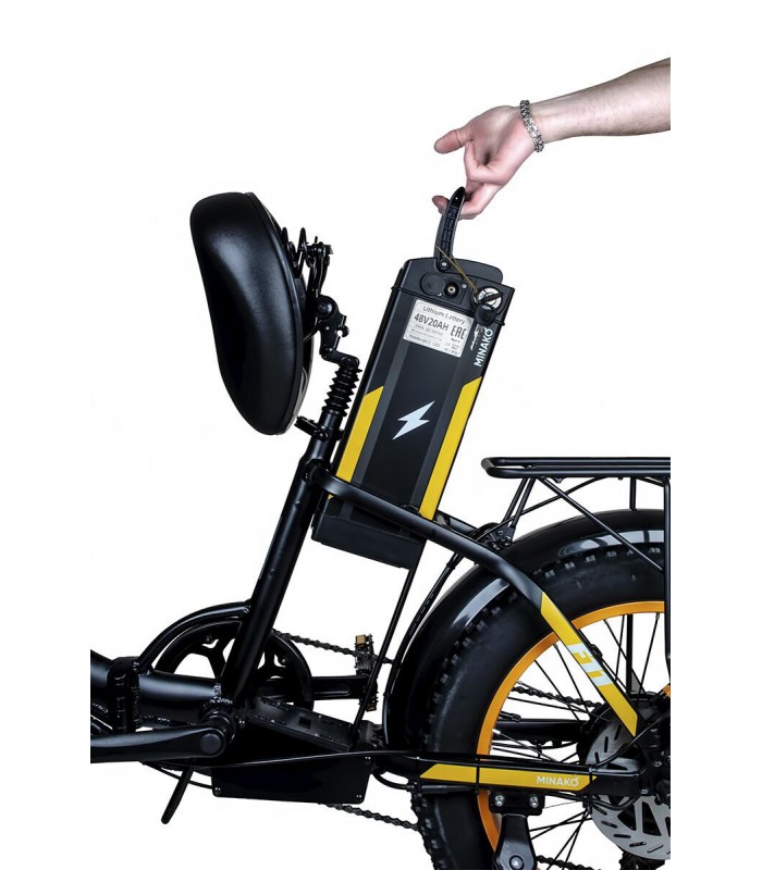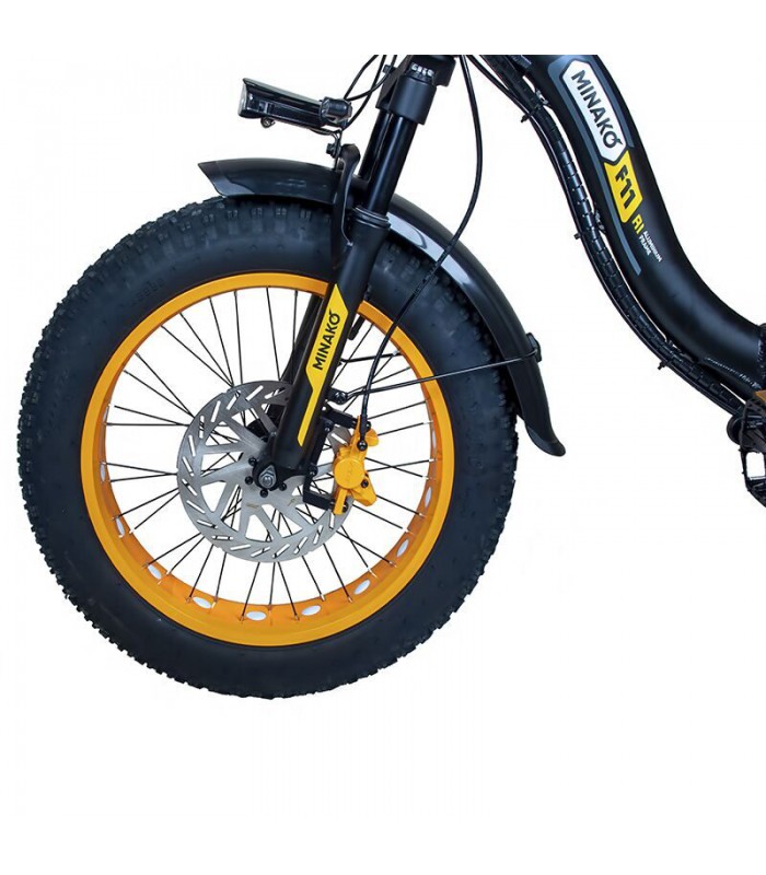 Minako F11 PRO 20Ah - это надёжный электро фэтбайк для города и пересечённой местности. Он способен разгоняться до 45 км/ч, благодаря мотору на 500 ватт. Литий-ионный аккумулятор на 960 Wh даст возможность проехать до 60 км без педального хода. Для полного заряда батареи понадобится всего 8 часов.