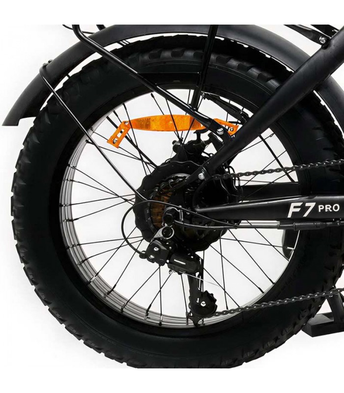 Навии Ф7 Про оснащён мотором на 250 ватт, благодаря чему он способен разгоняться до 32 км/ч без педального хода. Литий-ионный аккумулятор на 48V 12.8Ah (614Wh) даст возможность проехать до 50 км на одном заряде. Дисковые механические тормоза сделают остановку безопасной и точной. Для поездок в вечернее время спереди установлена яркая фара, а сзади стоп-сигнал. Удобный бортовой компьютер на руле обеспечит райдера всей необходимой информацией о состоянии электрического велосипеда (скорость, пройденное расстояние, остаток заряда).