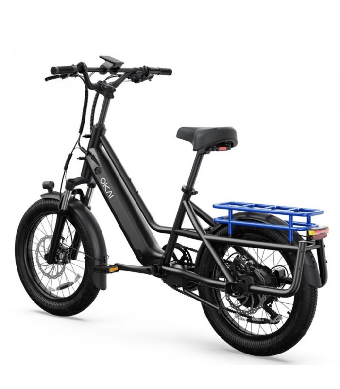 Электровелосипед OKAI EB70 E-Kargo создан для грузоперевозок за счёт усиленной рамы из авиационного алюминия 6 серии и прочного багажника. Грузоподъёмность электрического велосипеда до 200 кг. Вес электро велосипеда всего 33 кг. Мотор на 500 ватт даст возможность разогнаться до 32 км/ч. Широкие пневматические колёса с шинами пониженного давления 20x3 дюйма подходят для езды по городу и пересечённой местности.