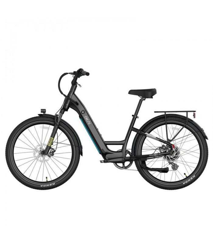 Цепная 7-ступенчатая система передач Shimano даст возможность легко кататься на электро велосипеде без помощи мотора. На электровелосипеде есть три скоростных режима: ЭКО | СПОРТ | ТУРБО. В роли дисплея выступает ваш собственный смартфон. На него можно установить приложение и разместить его на держателе для телефона в центре руля. Размеры электрического велосипеда 193 114 66 см, а габариты упаковки 163 82 31 см. Вес в паковке 35 кг. OKAI EB80 TraVRS поставляется в чёрной и синей расцветках.