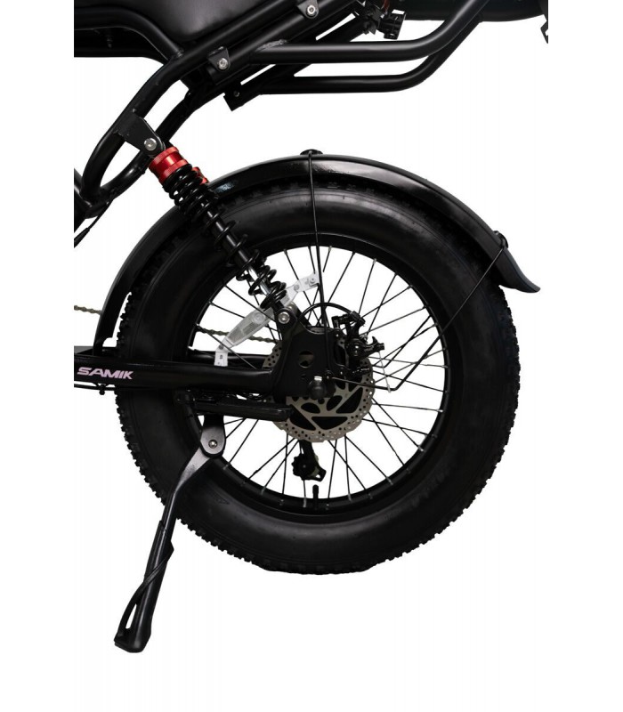 Рама Самик БК 20 изготовлена из прочной стали, благодаря чему он выдерживает большие нагрузки до 150 кг. Вес электро фэтбайка всего 51,2 кг. Дисковая тормозная механическая система с ABS обеспечивает безопасную остановку на любом дорожном покрытии.