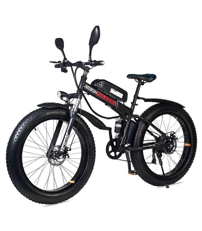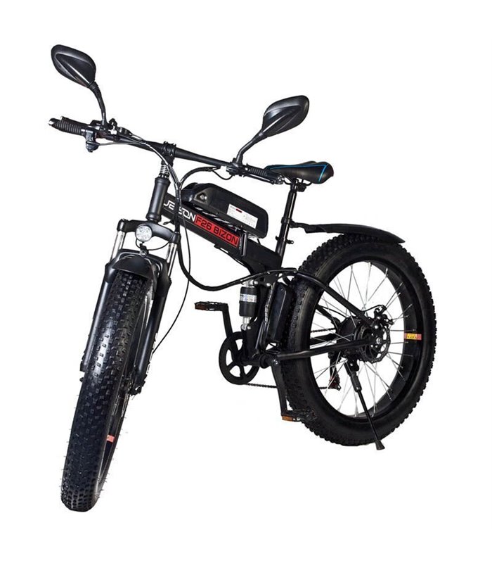 Электрофэтбайки отличаются от остальных велосипедов наличием больших колес с широкой внедорожной резиной. Модель Jetson F26-X BIZON – это современный вариант фэтбайка с ярким, спортивным дизайном и складной рамой. Максимальная скорость на таком велосипеде составит 45 км/ч, электродвигатель имеет мощность 500W.