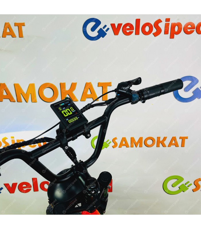 Для удобства на руле находится небольшой бардачок, в который можно убрать телефон или кошелёк. Также в рулевой части расположены: тормозные рычаги, информационный дисплей, кнопки управления подсветкой и курок газа. Дисковые тормоза обеспечат электронному велосипеду безопасную остановку практически на любой поверхности. Передняя яркая фара и задний габаритный огонь сделают очень комфортной поездку в вечернее время.