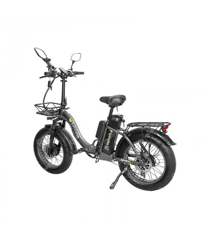 Рама электрического велосипеда сделана из качественного алюминия, поэтому его грузоподъёмность до 120 килограмм. Вес электро велосипеда 36 кг. Несомненным преимуществом данной модели является то, что она имеет простую и удобную систему складирования, при которой велосипед можно хранить даже в небольшой квартире или перевозить в багажнике автомобиля. Но это еще не все достоинства, в электровелосипед Syccyba H2 (F11) dual 23ah установлен круиз-контроль, а это означает, что вы можете выбрать оптимальную для вас скорость и не заботиться о кручении педалей – техника сделает всё сама. Информационный дисплей, закреплён на руле и отображает скорость, уровень заряда аккумулятора. Для езды в условиях плохой видимости, электрофэтбайк оснащён яркой фарой спереди и задним-стоп сигналом. В комплекте поставляется: