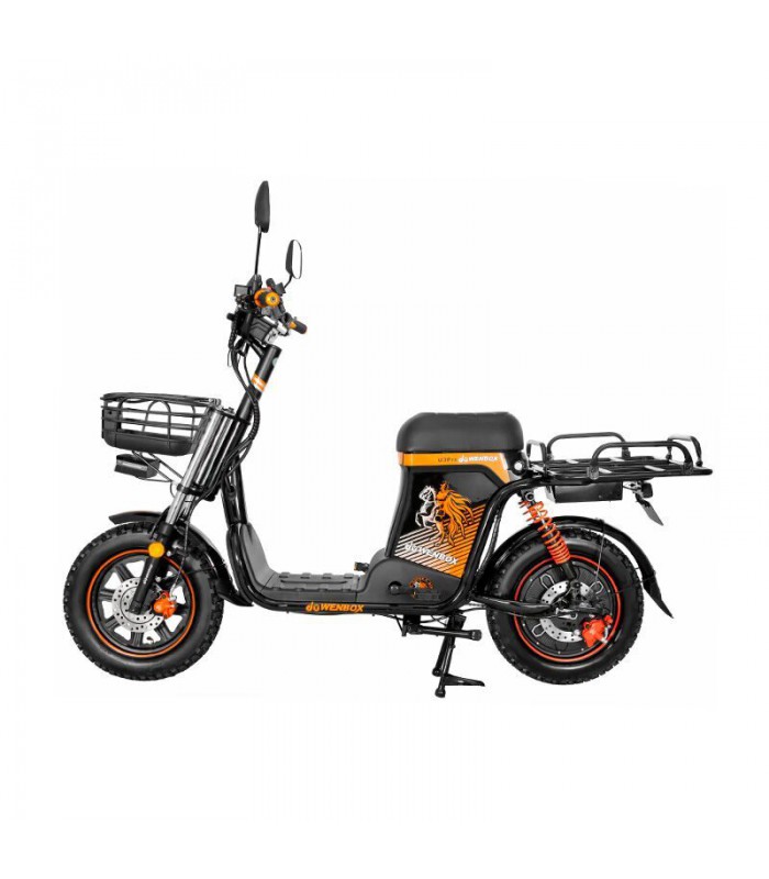 Электровелосипед Wenbo (Wenbox) U3 30Ah прекрасно подходит для курьеров благодаря вместительной корзине спереди и грузовому багажнику сзади. Мощный мотор на 1200 ватт (маркировка 240 ватт) даст возможность разгоняться до 55 км/ч без педального хода. Ёмкий Li-FePO4 (Литий-железо-фосфатный) аккумулятор на 60V 30Ah (1800Wh) позволит проехать до 60 км на одном заряде. Для полного заряда батареи понадобится всего 8 часов. Цельная рама придаёт дополнительную жёсткость конструкции и позволяет ей выдерживать нагрузку до 160 кг.