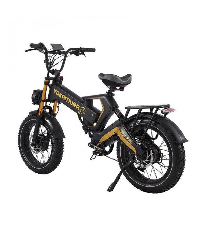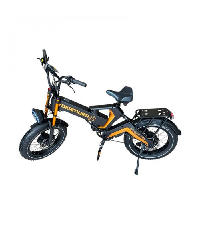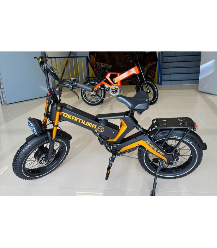 Yokamura Apache Pro - это улучшенная версия электровелосипеда Apache. В отличии от младшей модели у версии Pro более ёмкий аккумулятор на 48V 30Ah LG 21700 (1440 Wh). Ещё одним улучшением стал полный привод. Теперь у электрофэтбайка два мотора по 1000 ватт каждый, что позволит ему легко преодолевать крутые подъёмы. Вы сможете проехать на одном заряде до 50 км без педального хода. Для полного заряда батареи понадобится всего 10 часов. Электрический велосипед оснащён пневматическими широкими 20-дюймовыми колёсами с покрышками Kenda и глубоким протектором на шинах, за счёт чего он хорошо чувствует себя на песке, грязи и даже снегу.